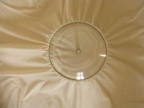 Figure 2. Circular Fold Notice how the cloth bunches up around the rim. This is simply because there is more sheet in the outer circumference of the rim than at any lesser diameter. In the S∞ model, the sheet represents the veil. The plate and magnets at the center represent the skirt and inner nexus. I do not believe that the sheet of the veil really forms an S bend. It is not necessary because our first harmonic gives us a place for the veil to cumulate mass. For the electron to become an independent entity, it is necessary for the veil to separate. The nan gap allows its outer shell to collapse upon its inner shell.