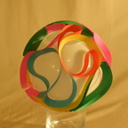 To illustrate this, the following photographs were taken of a ribbon from a paper saddlem placed around a glass globe. In the first photo, the ribbon was distributed all around the globe. In the second it is beginning to bunch around the top. In the third it has been tightly rolled. It is the same ribbon in all three, never cut, just configured differently. An external force (me) pulled them to different configurations. We describe how to make this ribbon in "Unit of the Universe Basics" and refer to it in "Photon in a Fishbowl" and "DNA Demonstrator". If you have made a saddlemniscus, you can follow the instructions to make a DNA demonstrator. Then use the ribbon to do these yourself. The ribbon represents the concentration of mass in the nan gap. So you see, it is not really wrinkled like the sheet.